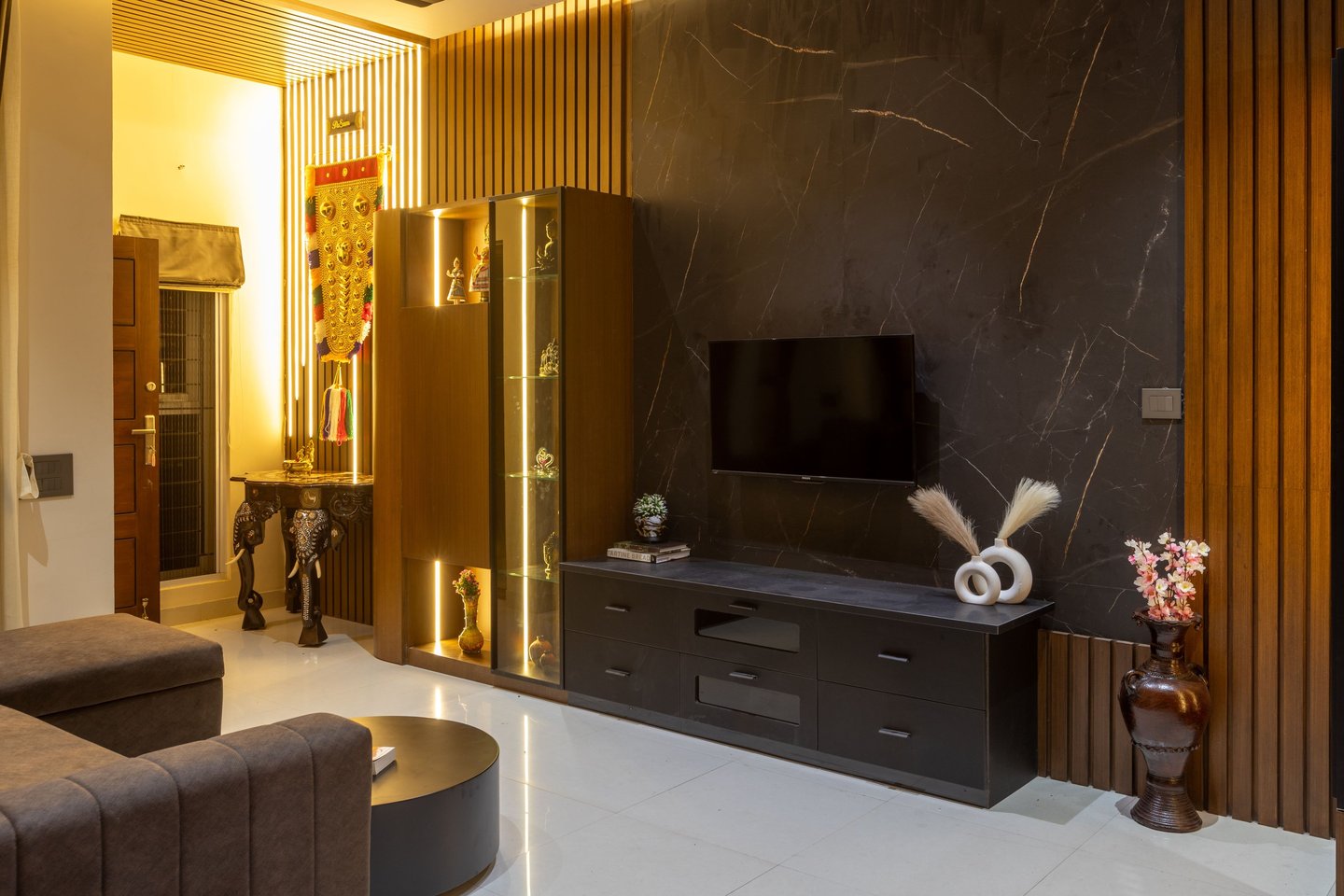 From concealed storage and open display shelves to sleek paneling and ambient lighting options, every element is curated to enhance both organization and visual appeal. Whether you prefer a minimal modern look or a rich, statement design, our TV units transform your living room into a sophisticated and clutter-free space.